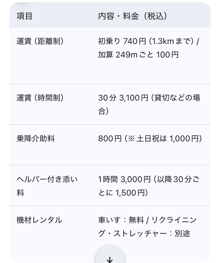 介護タクシーの料金は、お住まいの場所や介助の度合いによって一人ひとり異なります。
