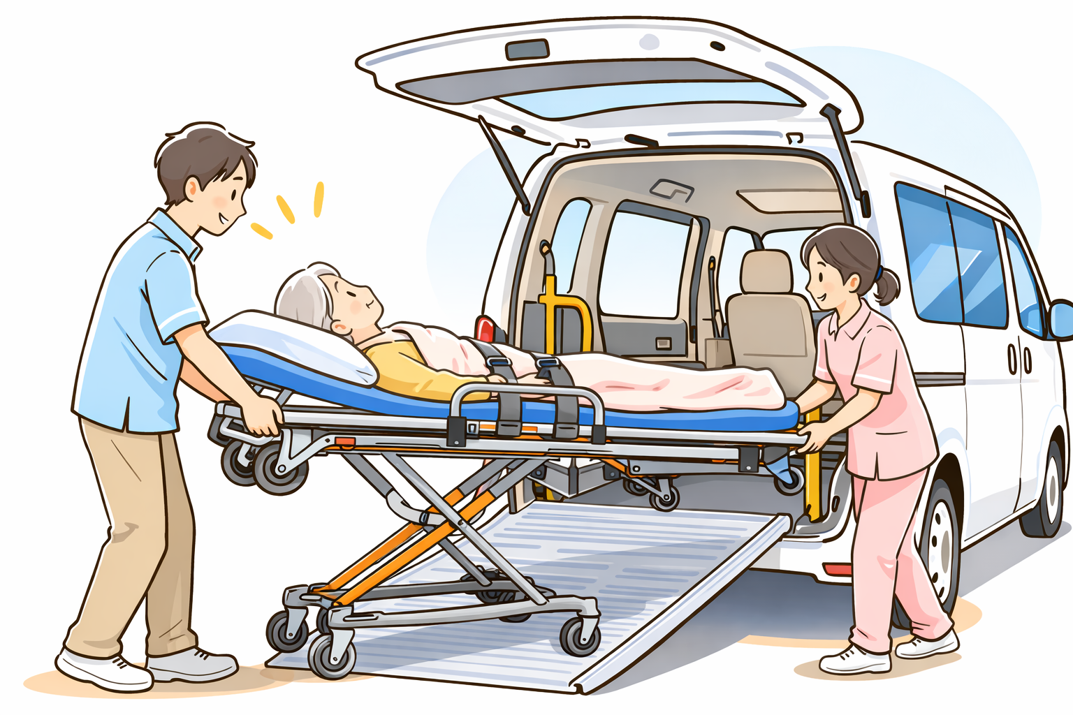 【天理市】ストレッチャー・車椅子での通院・退院をサポート|自費ケアサービス おはよーさんの安心送迎